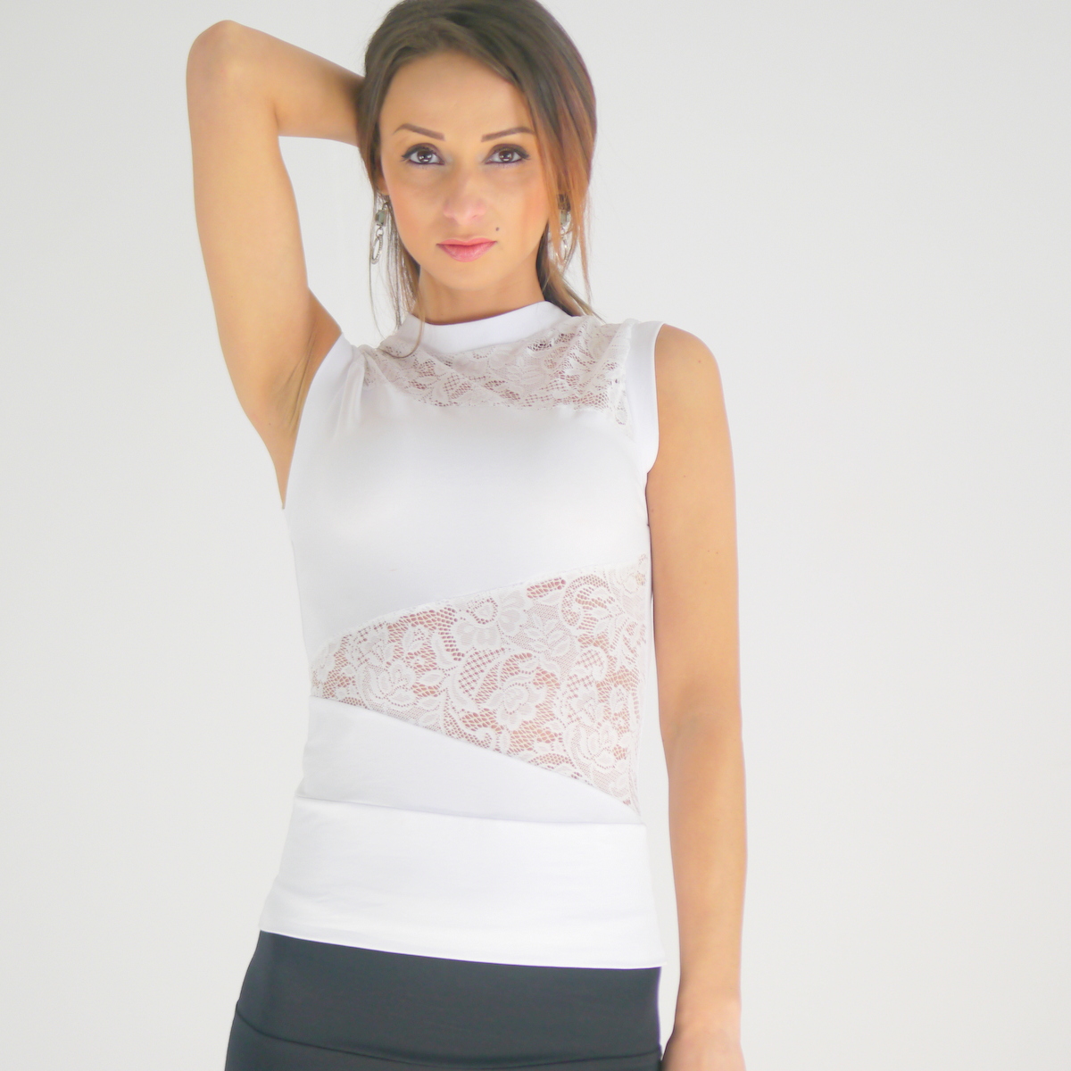 Schönes Oberteil für Damen mit elastische Spitze aus Baumwolle.