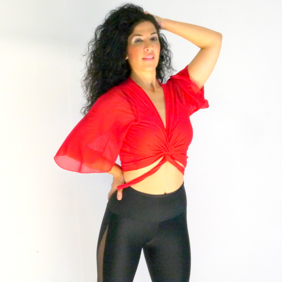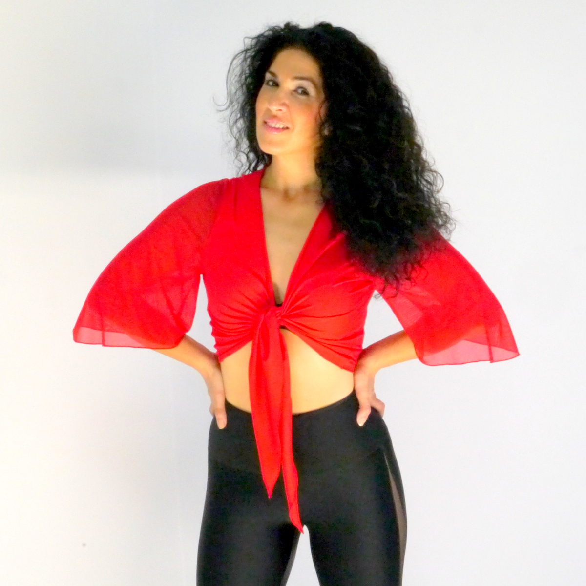 Produktinformationen "Wickeloberteil in rot / Bolero in rot aus Viskosejersey / Kurzes Oberteil in rot"