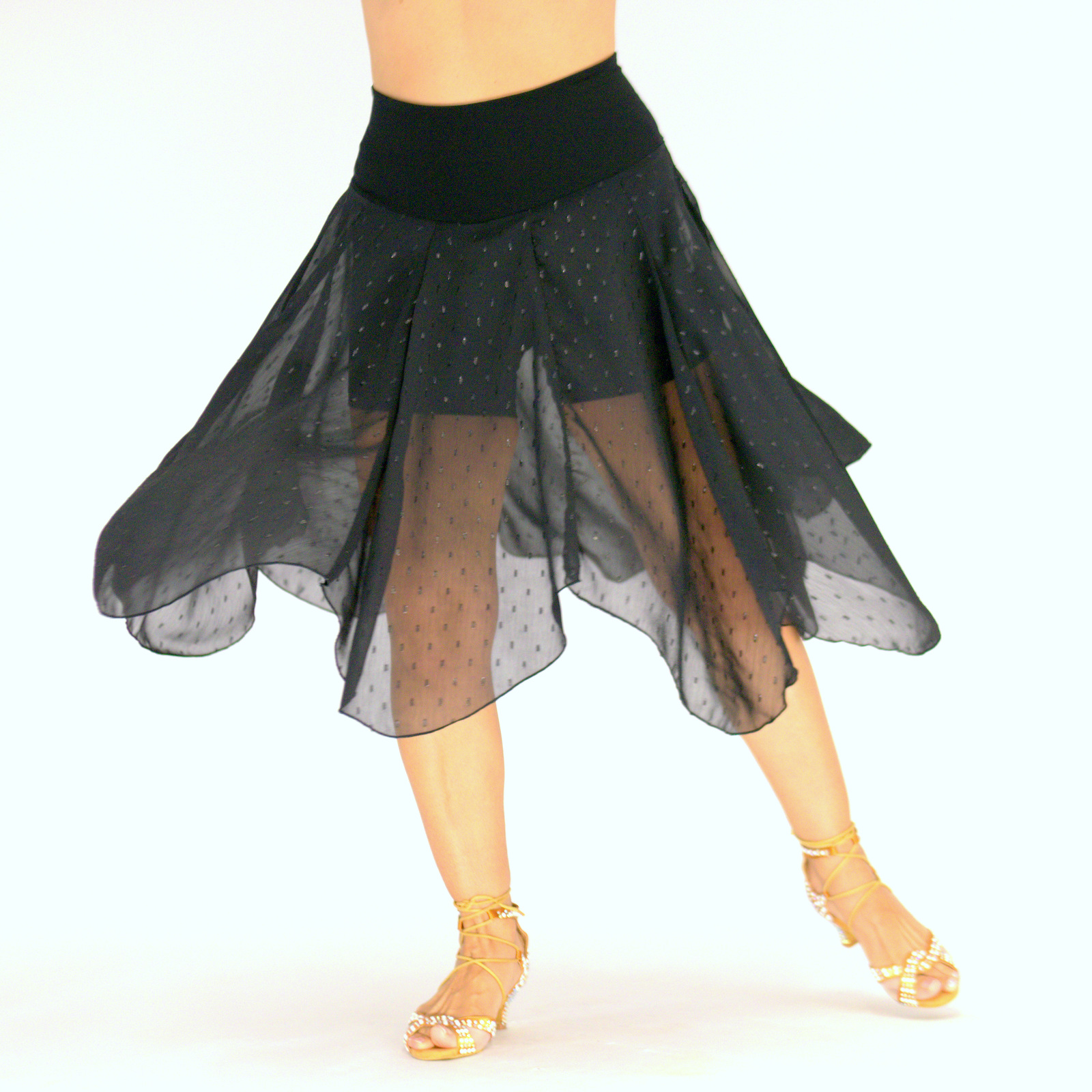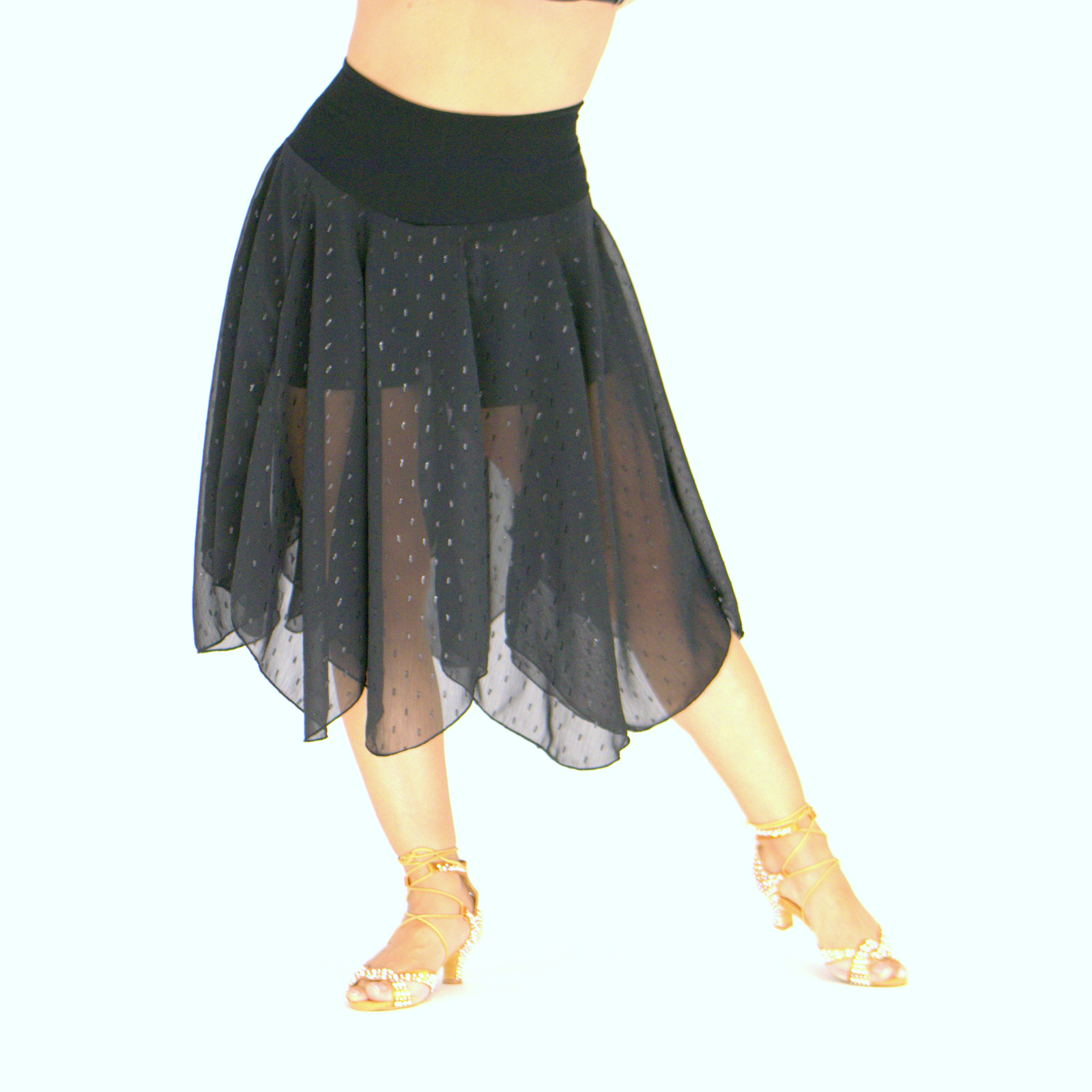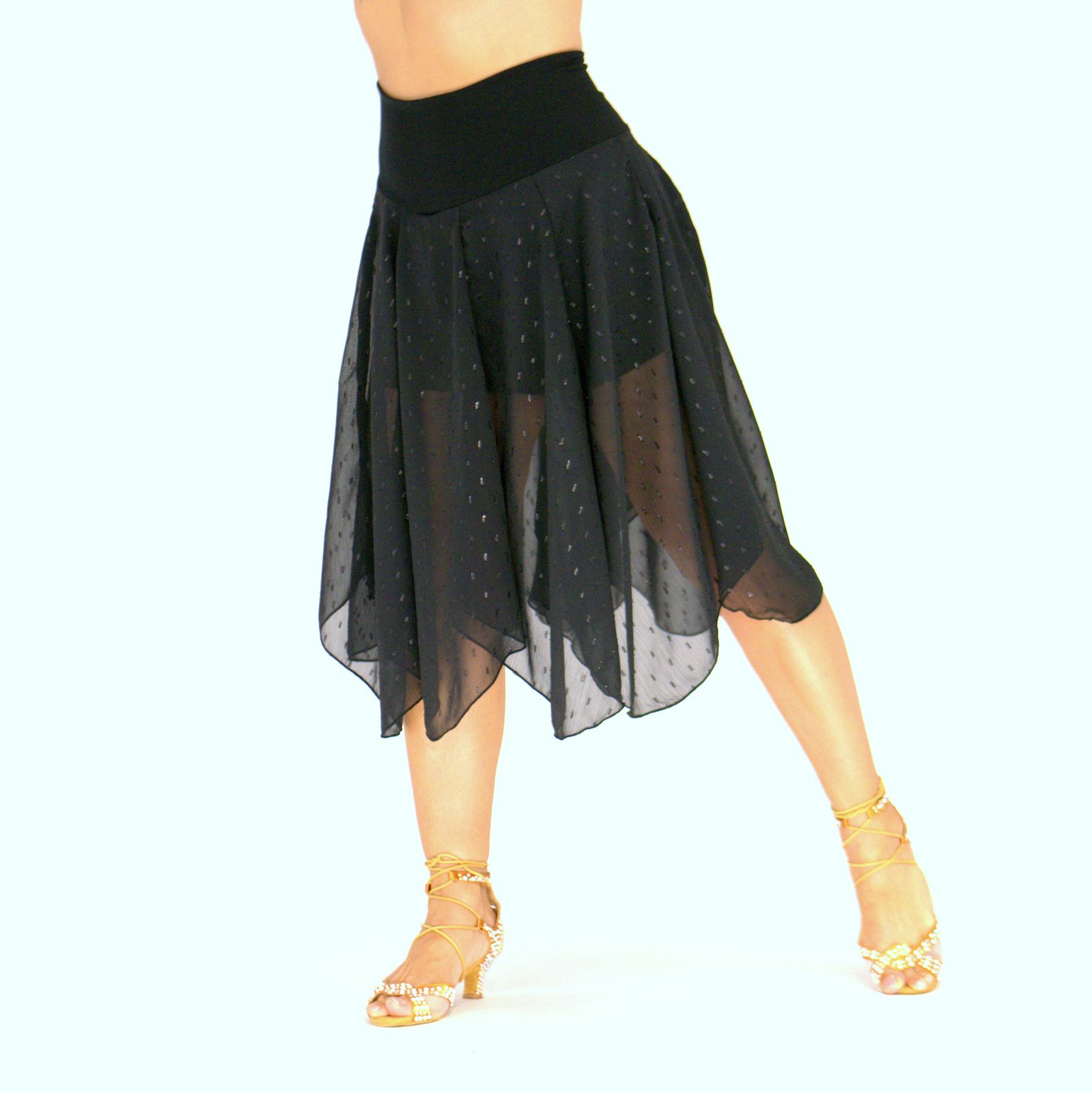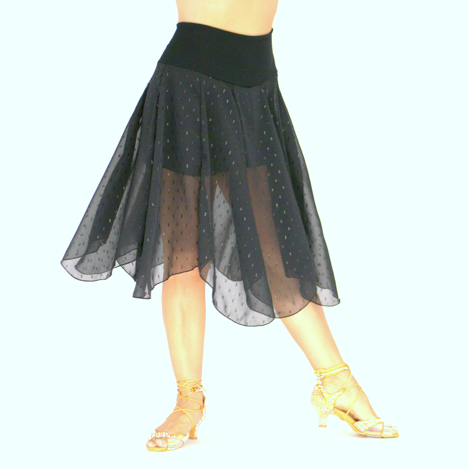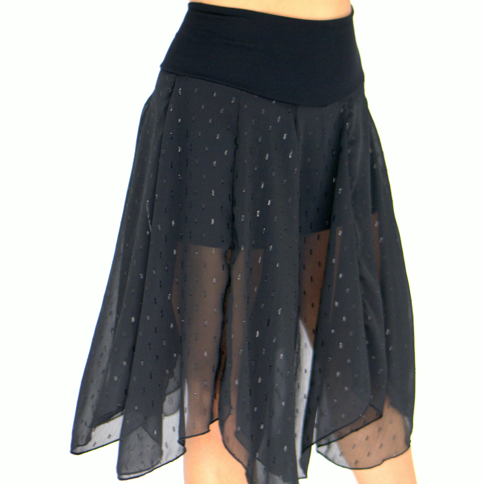 Produktinformationen "Eleganter Chiffon-Rock mit Glitzer-Details – Knie-lang, hohe Taille"