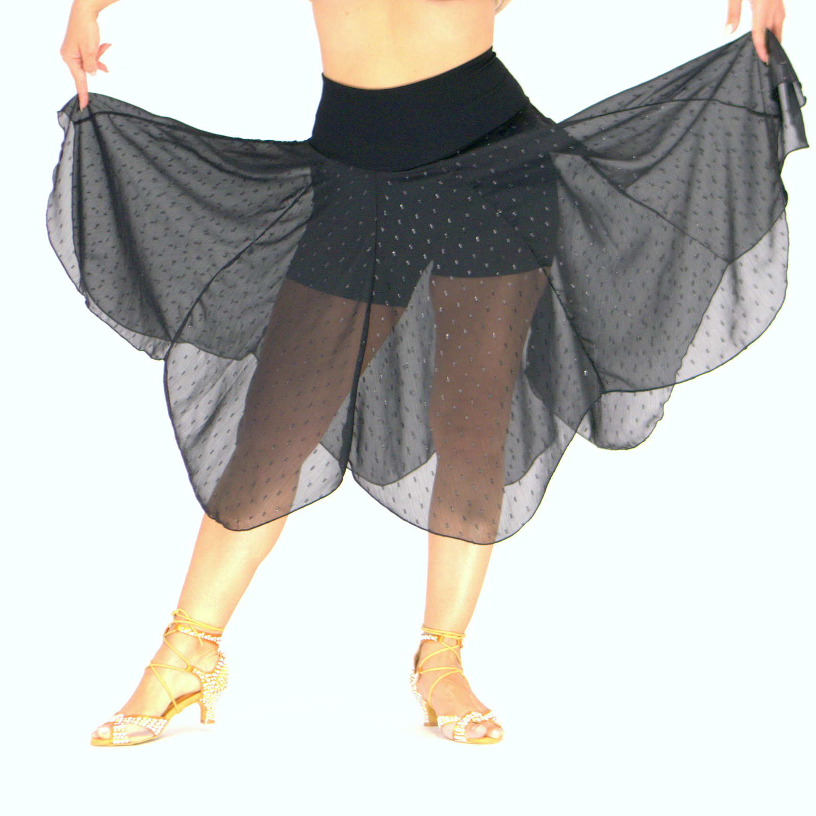 Dieser elegante Rock kombiniert den fließenden Charme von Chiffon mit dem Komfort einer integrierten Hose aus elastischem Viskosejersey. Die extra hohe Taille sorgt für eine schmeichelhafte Passform, während der knielange Schnitt für einen femininen, aber gleichzeitig praktischen Look sorgt. Die eingebaute Hose bietet maximale Bewegungsfreiheit und Komfort, während der Chiffonüberzug mit dezenten Glitzer-Details für einen festlichen Akzent sorgt. Perfekt für besondere Anlässe oder Tanzabende.