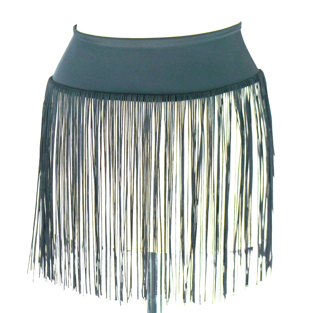 Elastische Gürtel mit 30 cm lange Fransen. In der Farbe schwarz, total praktisch, den kann man über Leggings anziehen über einen Rock oder sogar über Bikini.