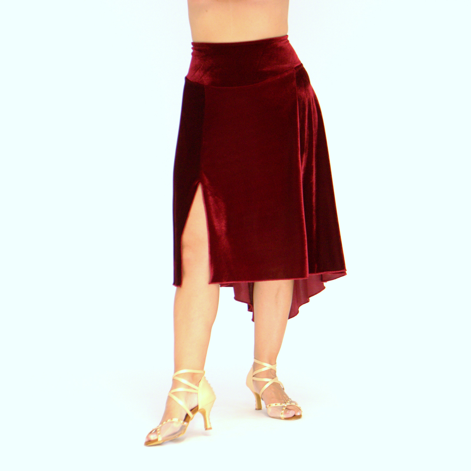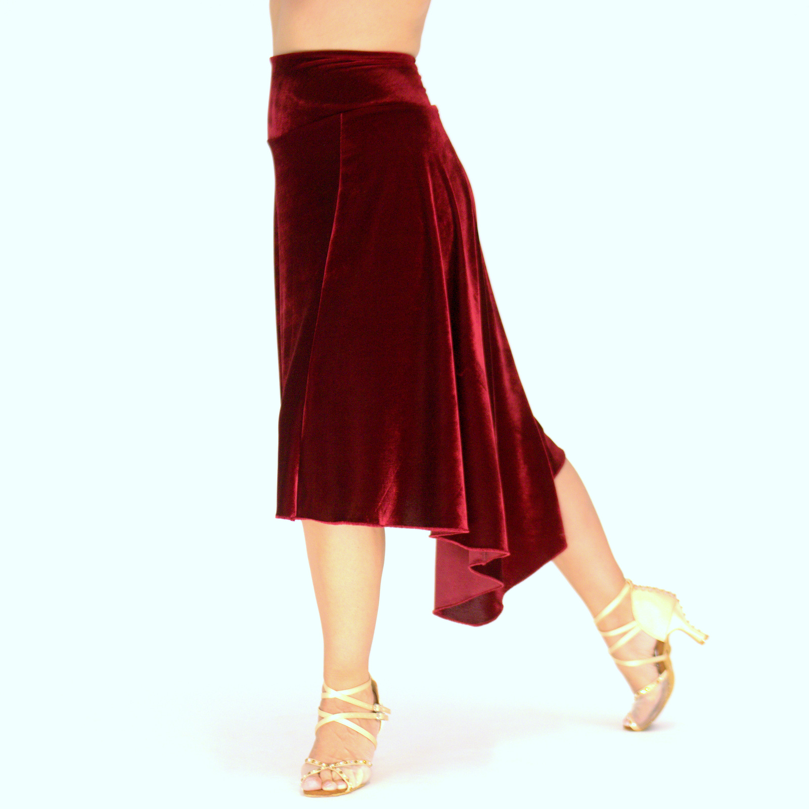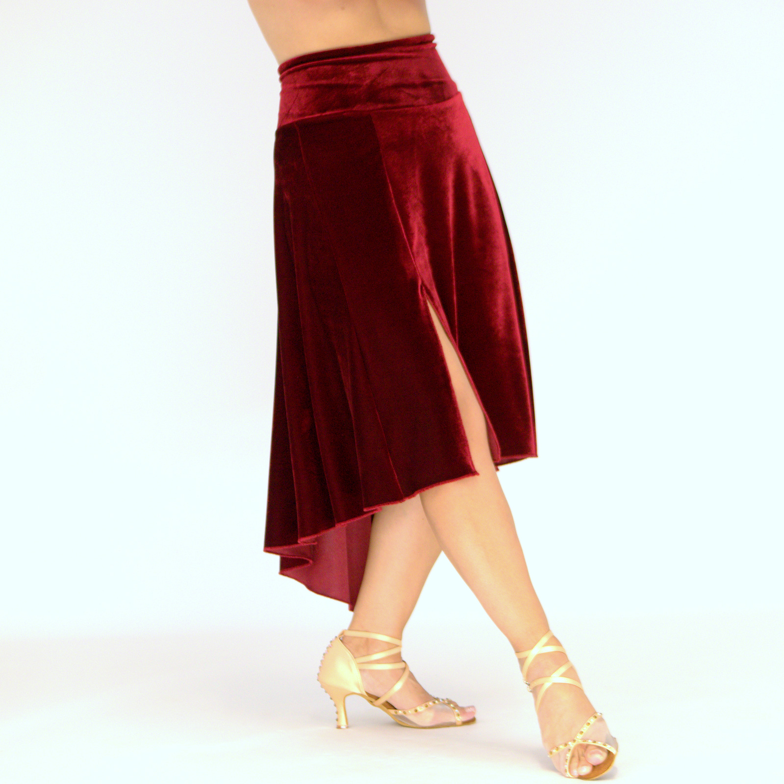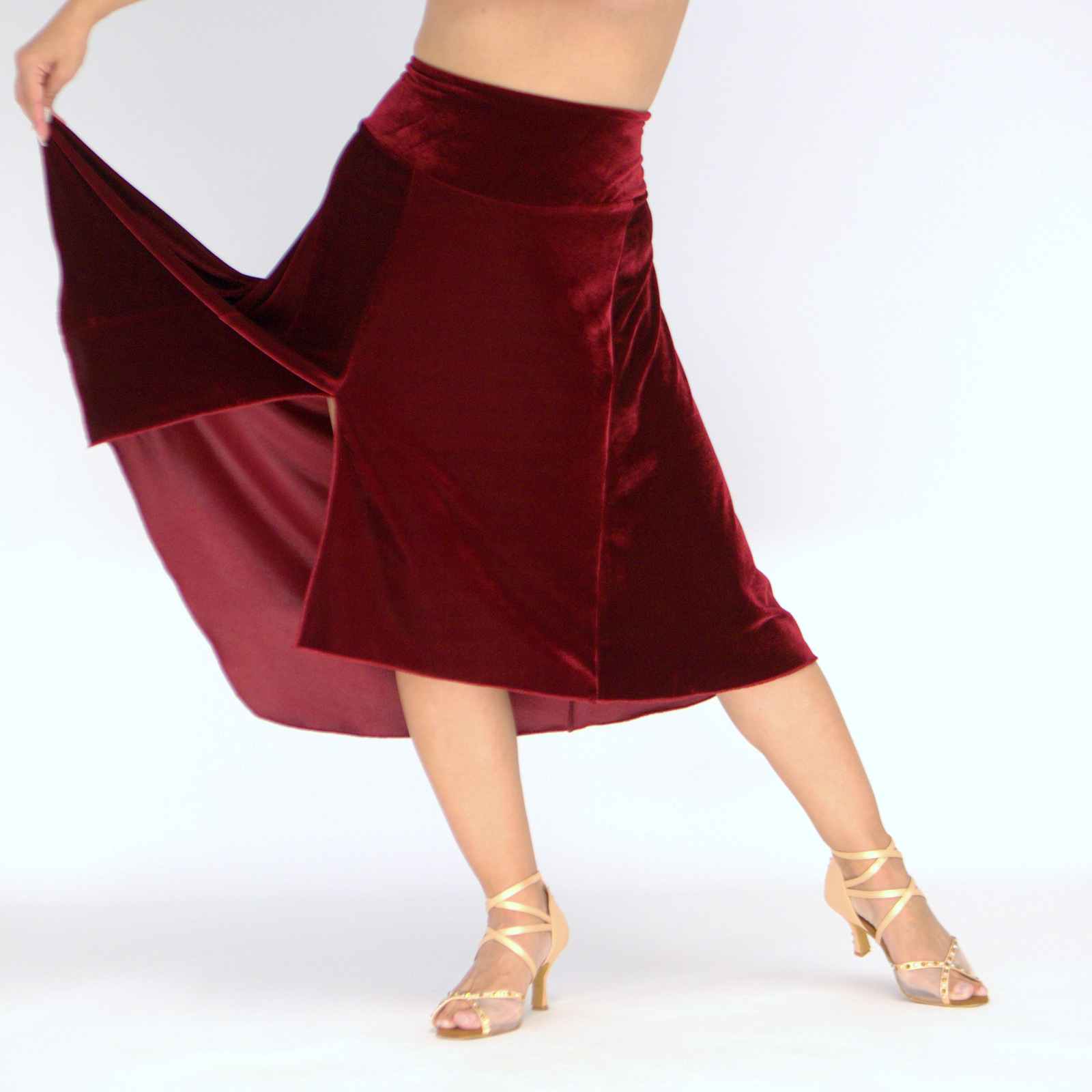 Produktinformationen "Karminroter Samtrock – Knielang / Tangorock"