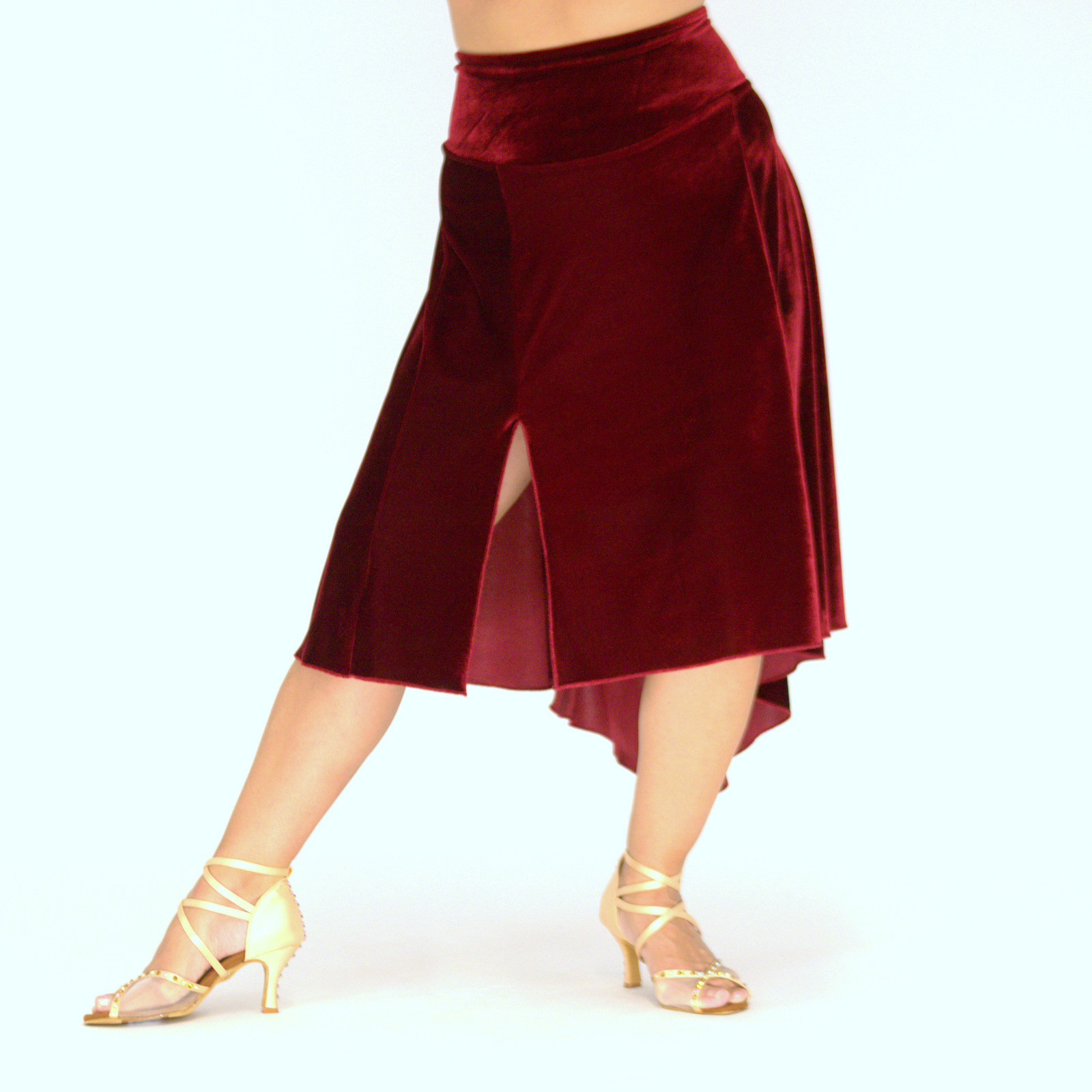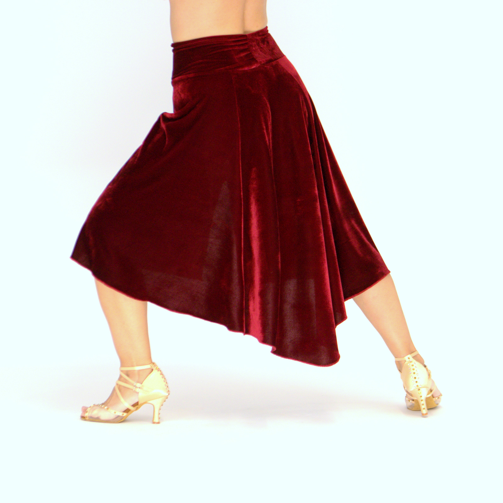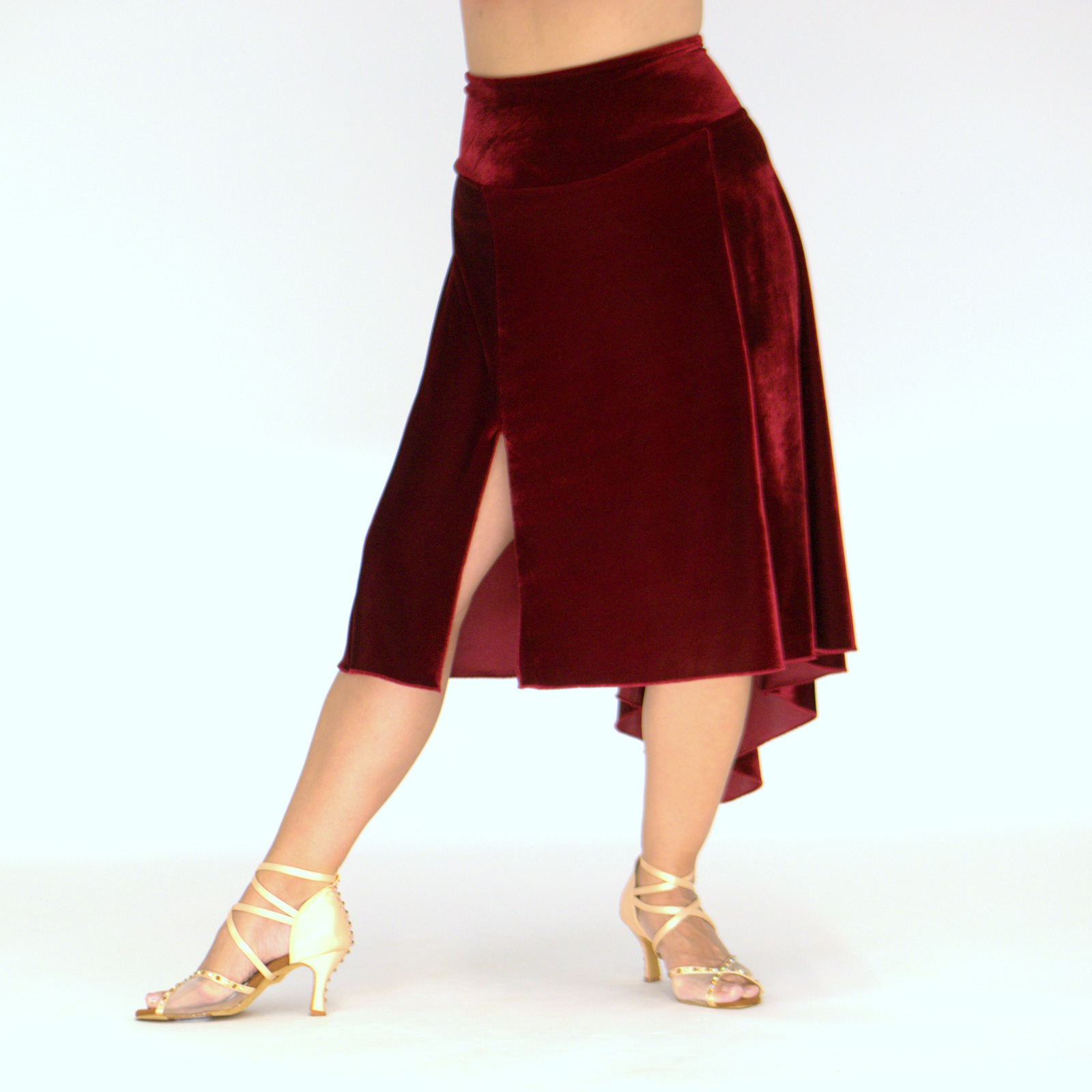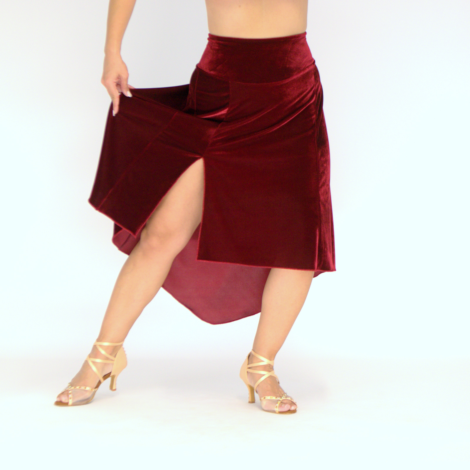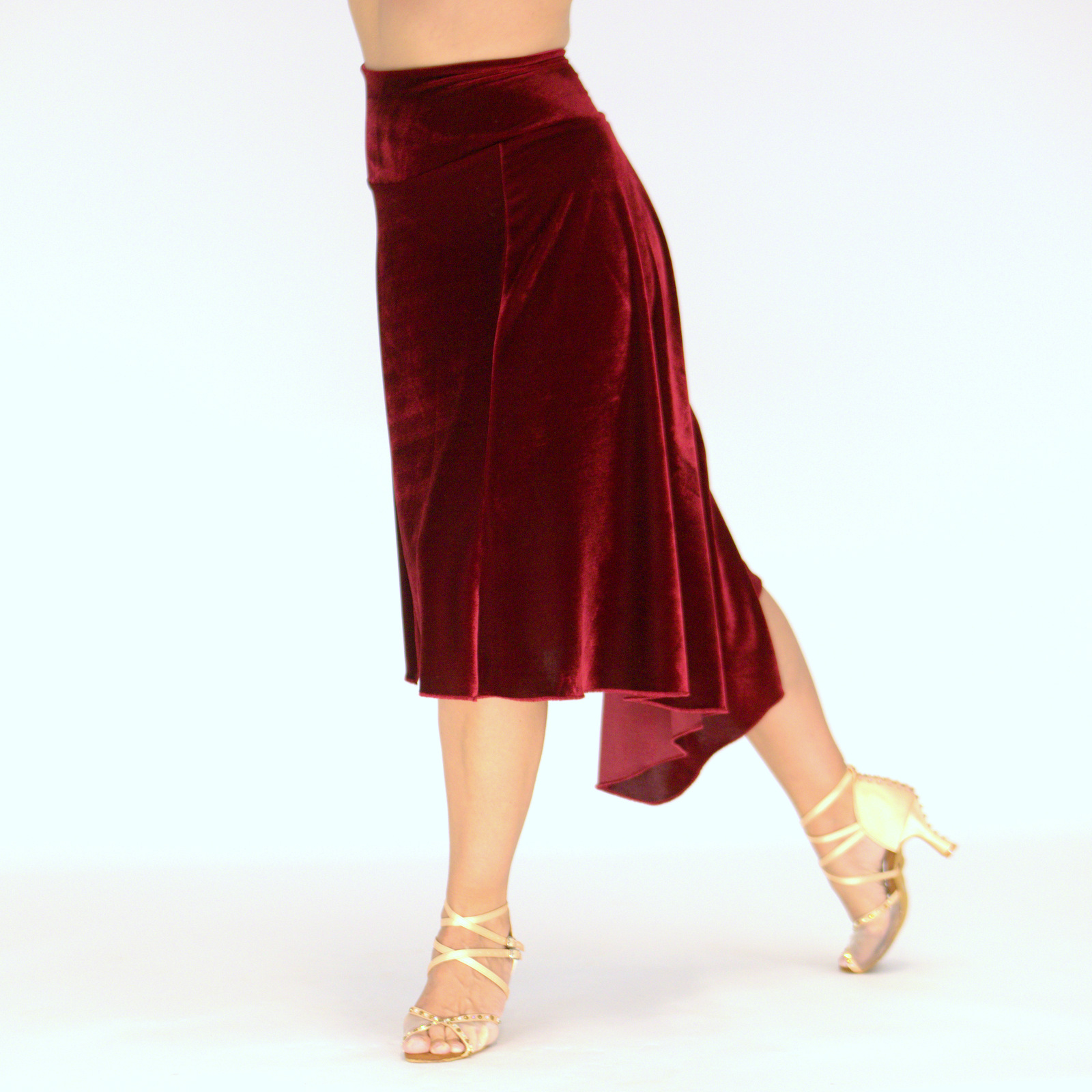 Produktinformationen "Karminroter Samtrock – Knielang / Tangorock"