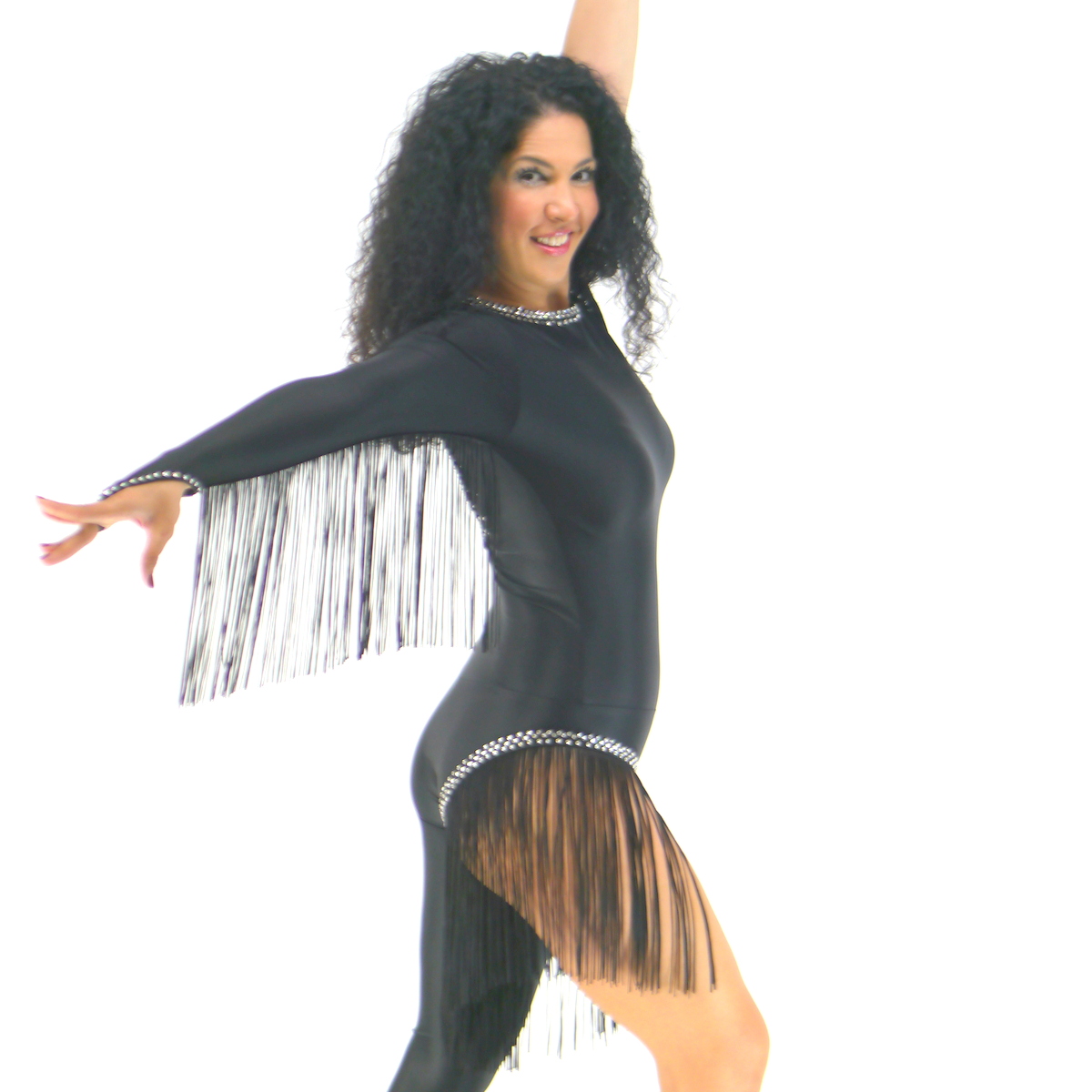 Schwarzes Overall mit Fransen, Catsuit mit Fransen und Strass Steine, Jumpsuit mit Fransen und Stras
