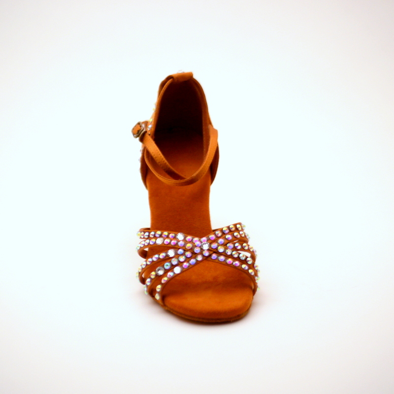 Tolle, handverzierte Latein Tanzschuhe in zeitlosem Kupfer. Durch die Strass-Steine bringen diese Schuhe jeden Raum zum Funkeln. Die Absatzhöhe beträgt 7,5cm, sodass sowohl Anfänger als auch Fortgeschrittene in diesem Schuh glänzen können.