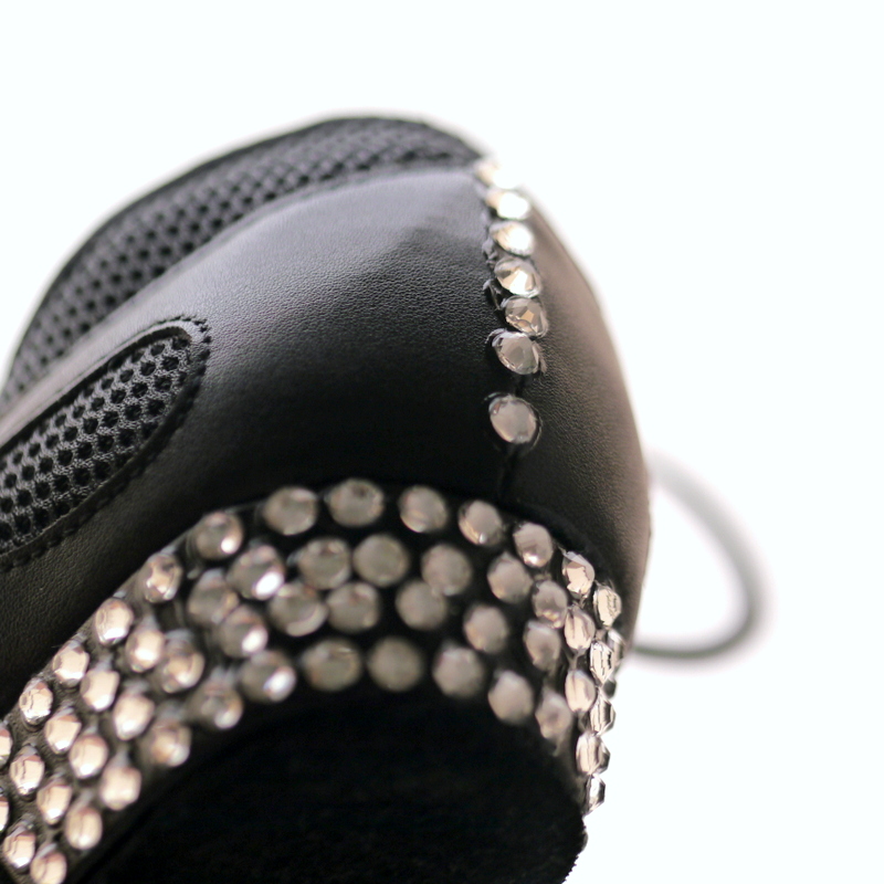 Tolle Tanzschuhe mit 2cm Absatz und somit bestens für Anfänger geeignet. Die Sohle ist aus Wildleder und die Schuhe haben einen Mesh-Einsatz, der den Schuh besonders leicht und bequem macht. Handverziert mit Strass-Steinen, sodass diese Schuhe ein absoluter Hingucker sind!