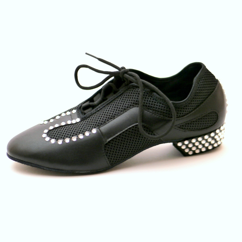 Leder Tanzschuhe mit flachem Absatz und Strass