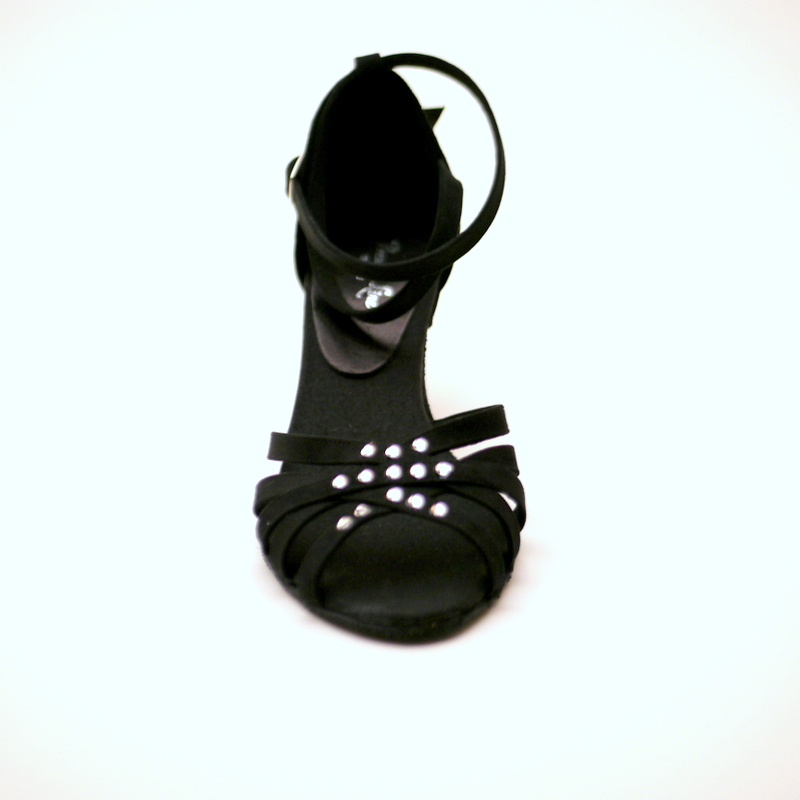 Schwarze Wildleder Tanzschuhe mit 7,5cm Absatz, somit bestens für Anfänger und Fortgeschrittene geeignet. Made in Italy und handverziert mit silbernem Strass
